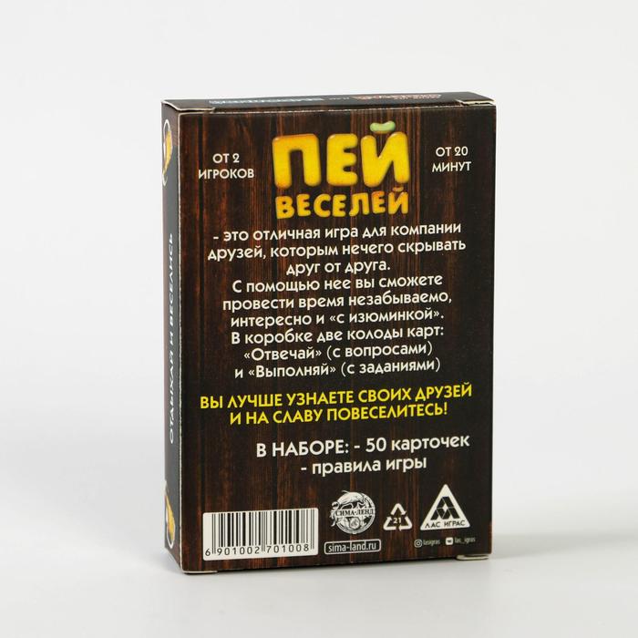 Купить игра для компании "пей веселей" 50 карт от 180 руб. с доставкой до пункта выдачи в Корсакове. Интернет магазин ДекаМаркет. Оплата при получении.